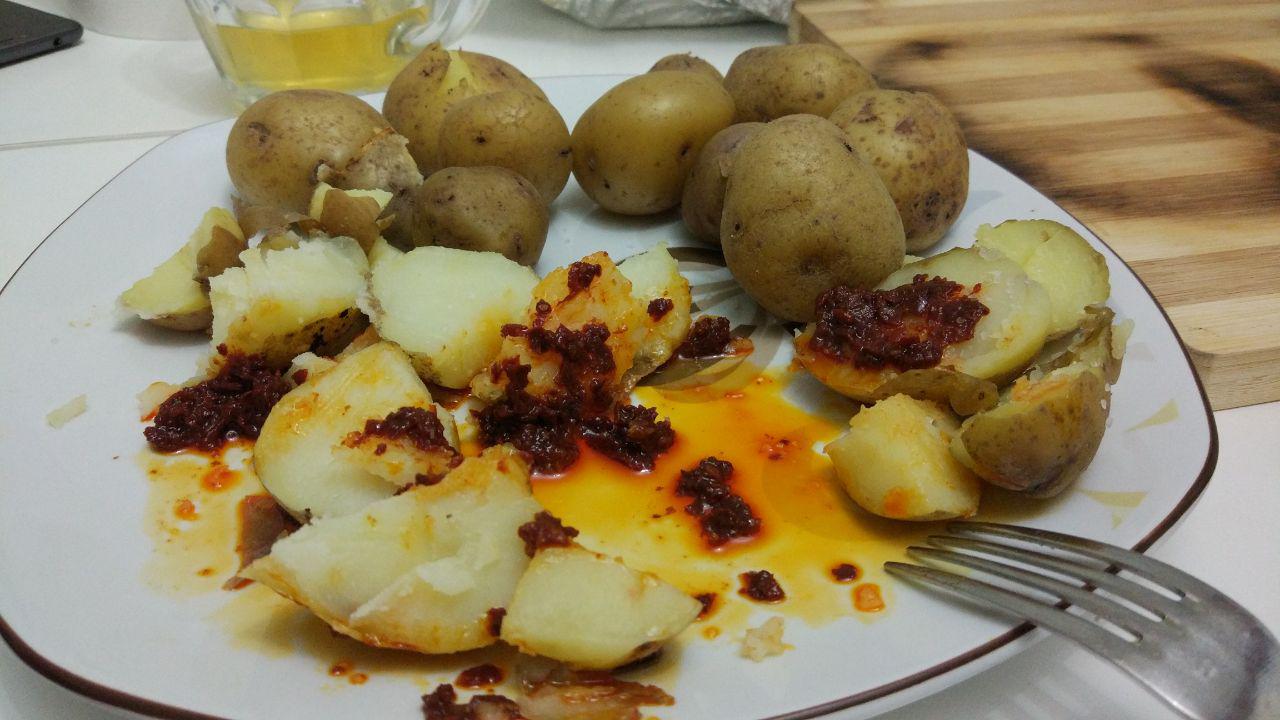 Hidratamos la pimienta diez minutos sin semillas (si queremos que pique las podemos dejar) ni rabo. Se corta en trozos pequeños y reservamos.