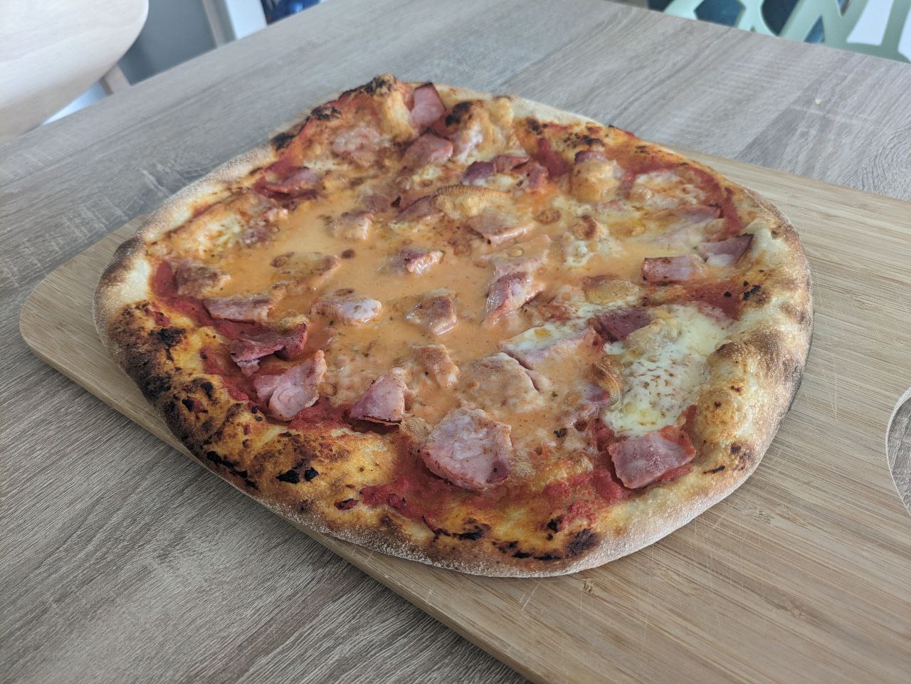 - Creme fresh con cebolla, panceta, mozarela y pimienta negra (champis opcionales)